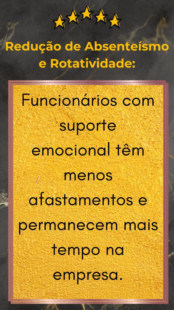 Produtividade Elevada: Colaboradores emocionalmente equilibrados desempenham melhor suas funções, gerando mais eficiência e qualidade nas entregas.